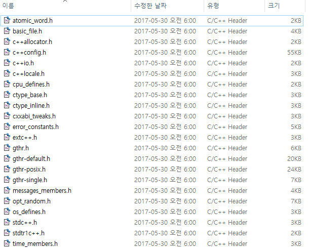 만약 C 폴더 밑에 MinGW를 설치하였다면 위의 경로에 있는 폴더를 연다. 만약 다른 경로에 설치하였다면, 앞의 경로에서 필요한 경로만큼 따라 들어가면 된다.