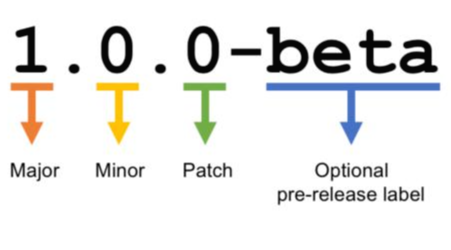 버전은 점으로 구분된 세 가지 숫자와 추가적인 정보로 이루어져 있다. 첫 번째 숫자는 Major 버전으로, 이 숫자가 바뀔 경우 정말 큰 변화가 발생했다고 할 수 있다. 아예 새로운 패키지라고 생각해도 좋을 정도로 많은 변화 및 내용 확장이 발생할 때 이 숫자가 바뀐다고 생각해도 된다. 두 번째 숫자는 Minor 버전으로, Major보다 적지만 기능이 추가되거나, 내부에 커다린 리팩토링을 진행하였거나, 오래된 함수를 관리할 때 바뀌는 숫자이다. 이 숫자가 바뀌었을 경우 기존의 API는 사용이 가능하지만, 가급적 새로운 기능을 이용을 권장한다. 세 번째 숫자는 Patch 버전으로, 미미한 변화가 생기거나 버그 수정과 같이 사소한 변화가 생겼을 때 바뀌는 숫자이다. 그 뒤에는 추가적으로 베타 버전, 사전 등록 버전이란 뜻을 붙일 때 사용한다.